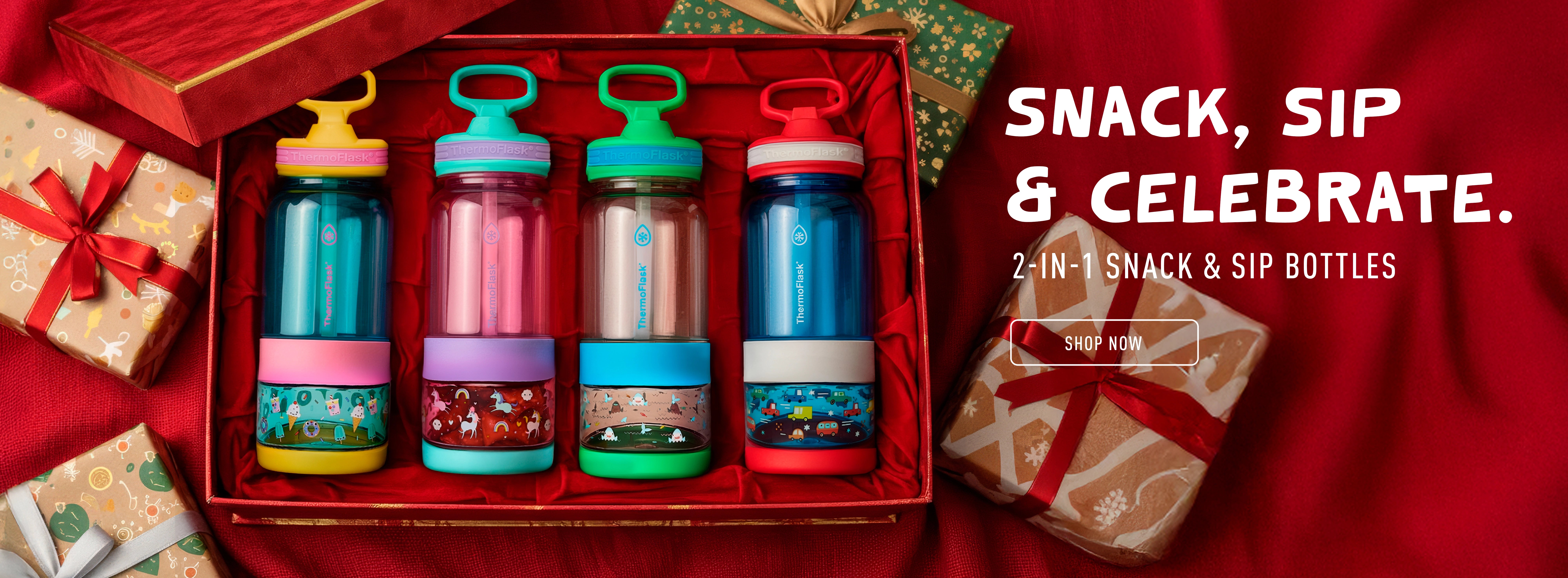 Perfect for stockings or travel bags, these compact, lightweight bottles make on-the-go hydration and snacking effortless.