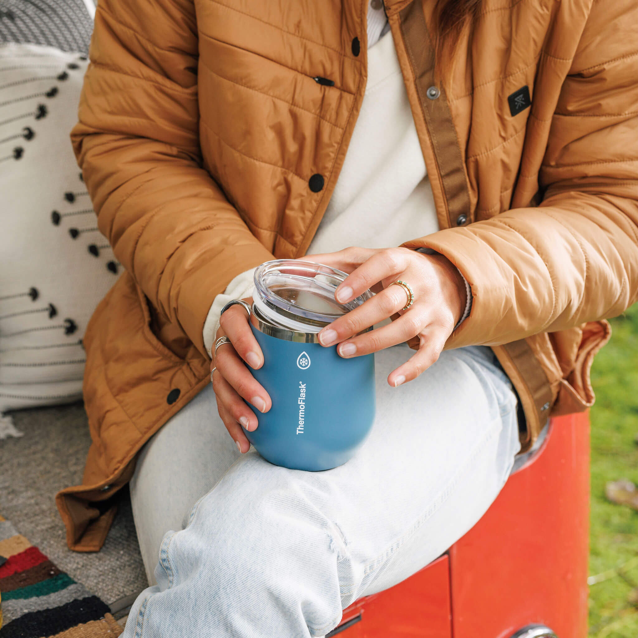 Keeps drinks cold for 12 hours and hot for 4. - Press-in splash-proof lid.