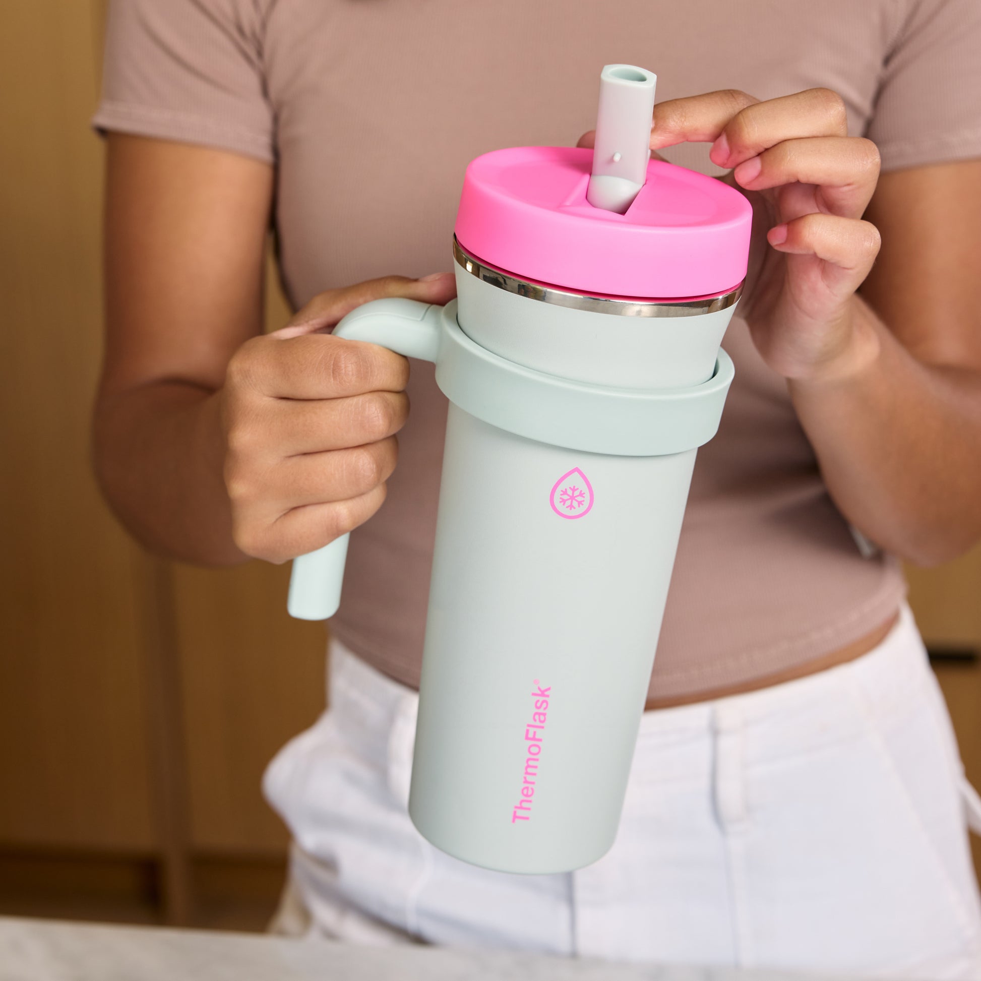 Sip effortlessly through a straw that folds down to lock in leaks—perfect for hydration on the go. - WIDE MOUTH DESIGN