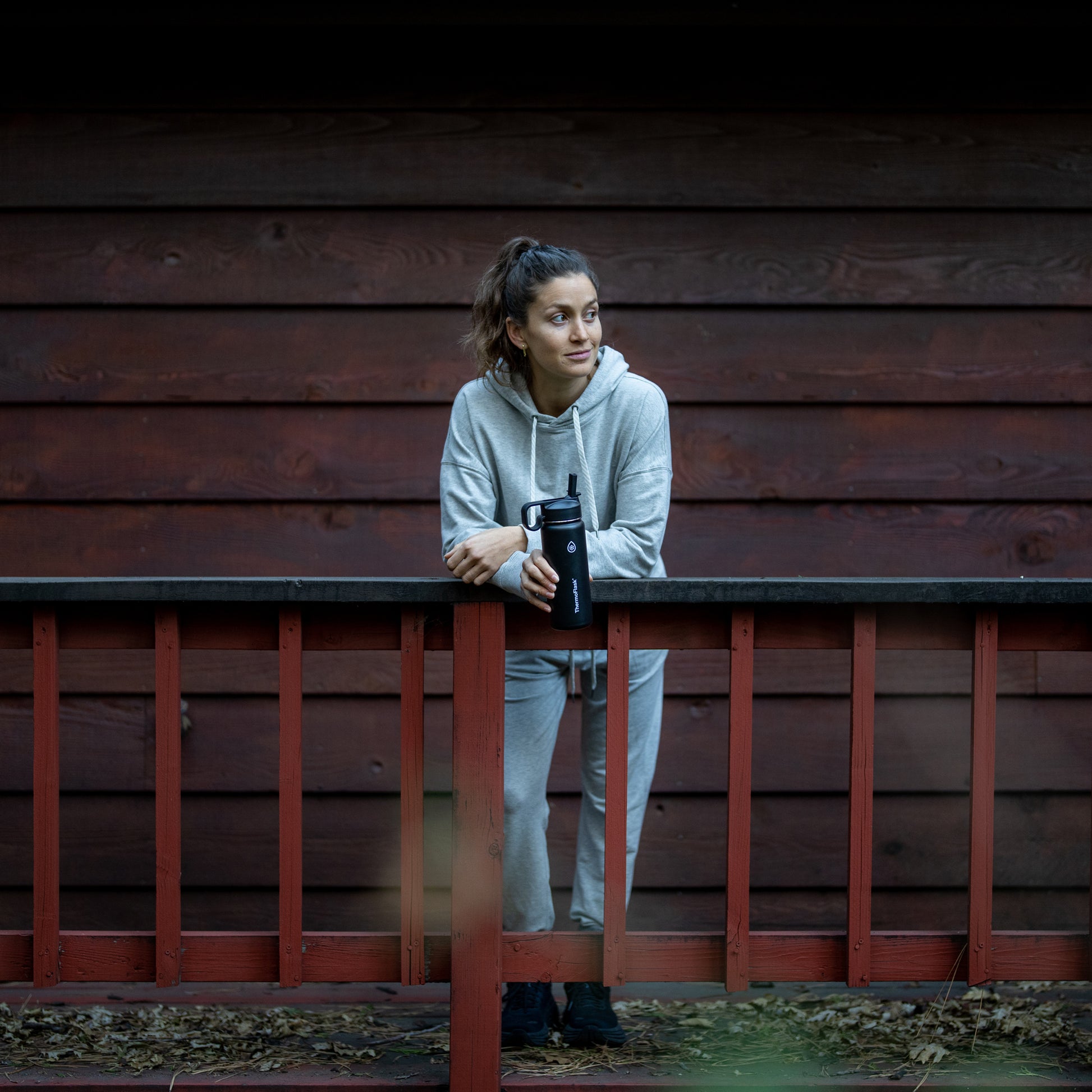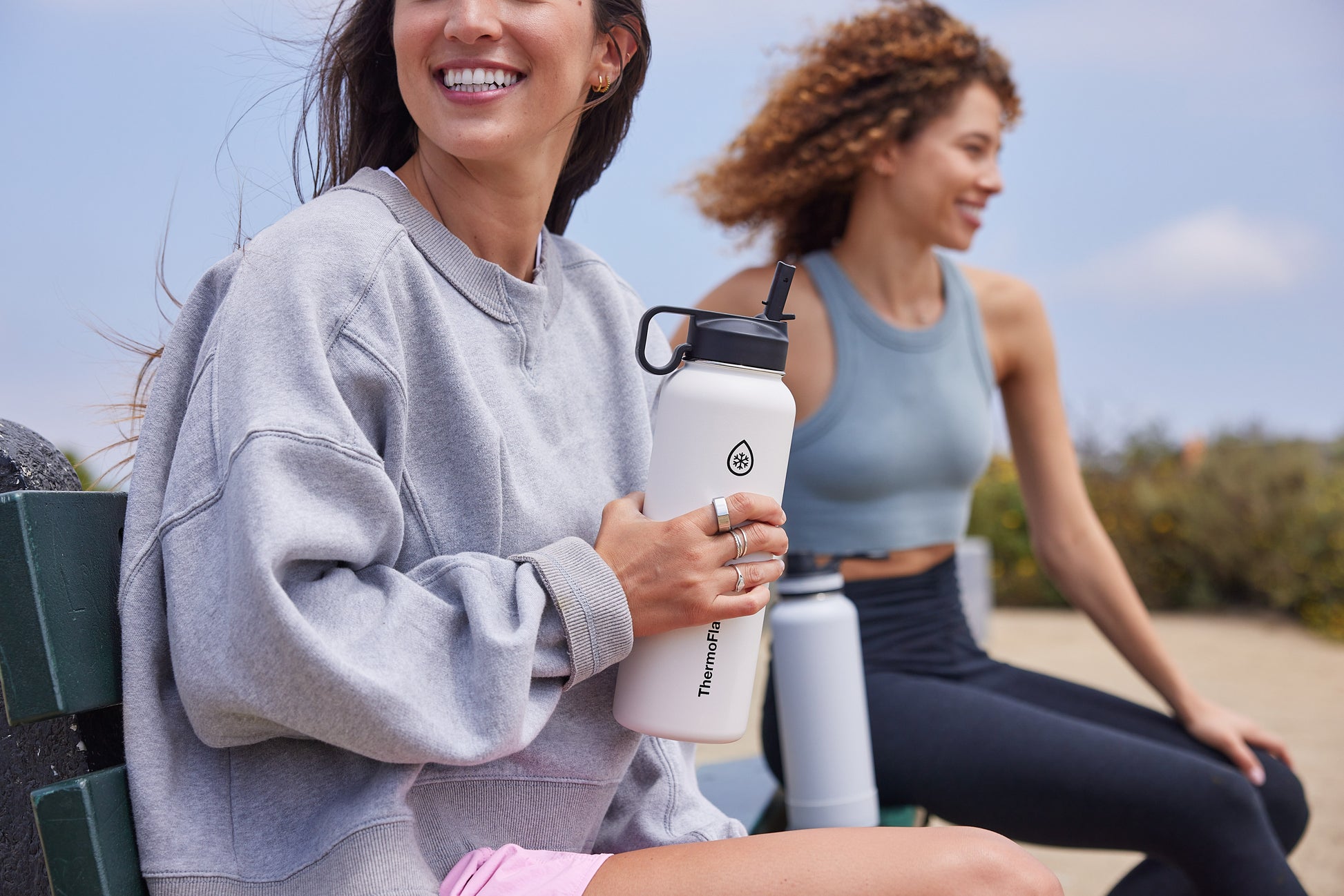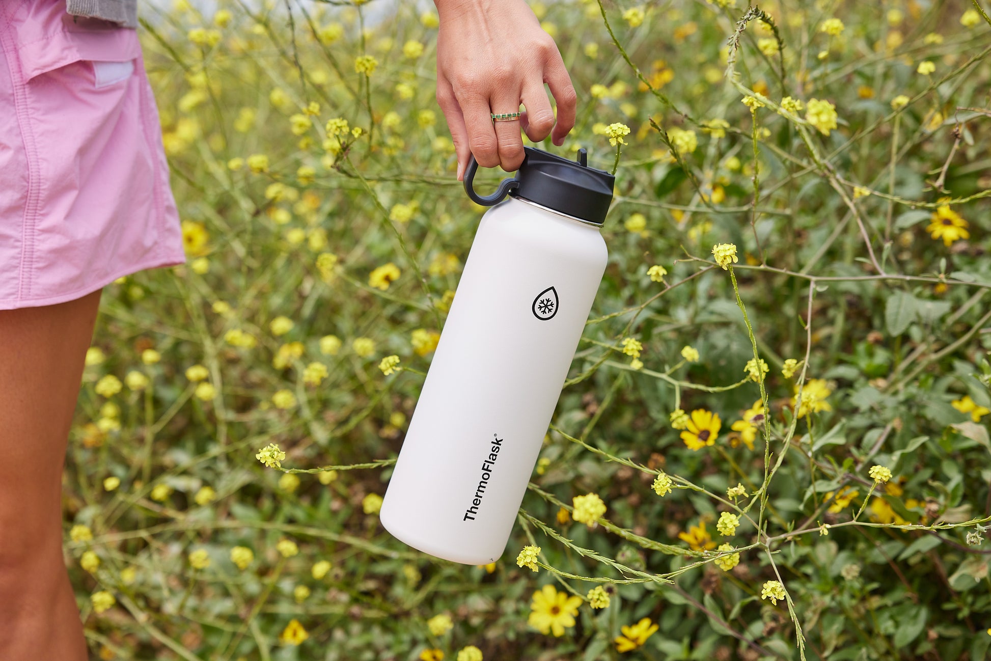 Our bottle is made of 18/8 food grade stainless steel with 2 BPA-free plastic lids.